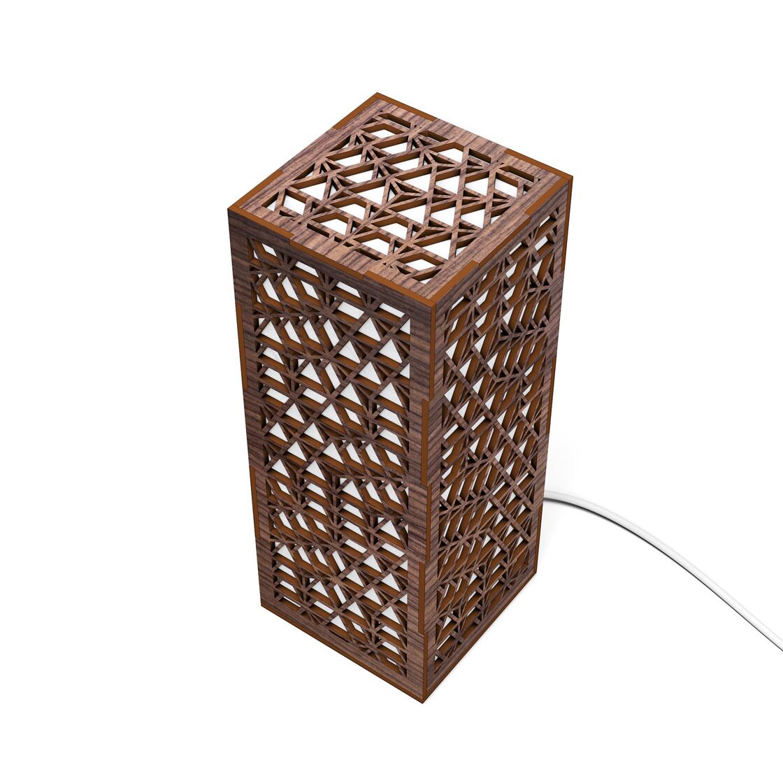 規則正しく流れるように整列された三角形デザインが美しい電源式スタンド行灯です。